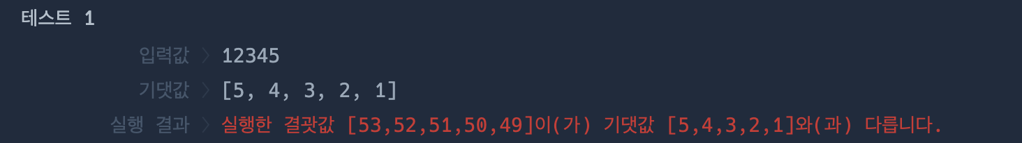자연수 n을 뒤집어 각 자리 숫자를 원소로 가지는 배열 형태로 리턴해주세요. 예를들어 n이 12345이면 [5,4,3,2,1]을 리턴합니다. 제한 조건 n은 10,000,000,000이하인 자연수입니다. 입출력 예 n return 12345